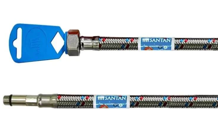 Шланги покриті металевим обплетенням. Для візуального відмінності шланга газового від водопровідного шланга в оплетке жовта смуга, на шлангу для води - синя.