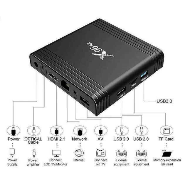 Смарт приставка X96 Air 4 це надійний пристрій, який надасть вам безліч дивовижних можливостей у світі розваг. Благодаря своїй функціональності і зручності використання, вона стане незамінним компаньйоном для вашого домашнього відпочинку. Підключіть приставку до вашого телевізора і насолоджуйтеся стрімінговими сервісами, іграми та мережевими додатками прямо на великому екрані. X96 Air 4 пропонує широкий спектр розважальних можливостей, які будуть максимально відповідати вашим потребам. Компактний розмір і стильний дизайн роблять цю приставку ідеальним доповненням до вашого інтерєру.