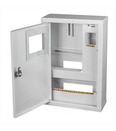 Щит монтажний ШМР-1Фе-10А-Н (365×245×96) призначений для встановлення однофазного електросчетчика з можливістю підключення до 10 автоматичних вимикачів та пристрою захисного відключення (УЗО). Виготовлений з надійного металевого корпусу, який забезпечує захист електросчетчика та автоматів від пошкоджень і пилу. Модель оснащена накладним УЗО для підвищення безпеки електропостачання. Ідеально підходить для використання у житлових і комерційних приміщеннях, забезпечуючи зручність монтажу та надійність експлуатації.
