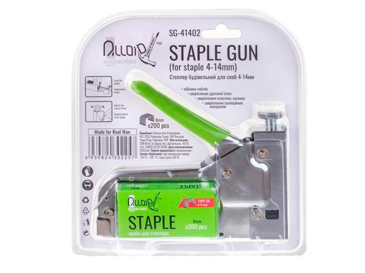 Інформація Степлер будівельний ALLOID для скоб 4-14мм +200 скоб 8мм (хром)