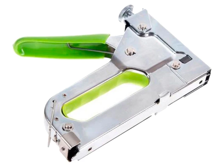 Скобозабивний будівельний пістолет (хром) моделі SG-41402 призначений спеціально для з'єднання різних не особливо твердих матеріалів, наприклад пластику, дерева, фанери, утеплювача і так далі. Досить багатофункціональний інструмент, який ще називають скобострілом, текером, будівельним степлером. За допомогою скоб здійснюється з'єднання матеріалів між собою. Цей скобозабивний пістолет має кручену пружину. Таку пружину можна визначити по регулювальному гвинту, розташованому на самому корпусі інструменту. Для того, щоб поміняти скоби в пістолеті необхідно: заблокувати інструмент за допомогою запобіжника, потім відкрити кришку степлера і дістати стрижень з кручений пружиною, після чого рейку з скоб вставити в паз, встановити стрижень на колишнє місце і закрити кришку. Для регулювання ступеня стиснення необхідно використовувати гвинт на корпусі інструменту. При використанні інструменту рекомендується надійно зафіксувати матеріали, що скріплюються, після чого щільно приставити скобозабивний пістолет. Не варто забувати про дотримання техніки безпеки під час роботи з інструментом, спочатку настройте інструмент і приготуйте робоче місце. Степлер будівельний використовує скоби 4-14 мм. У комплекті 200 скоб 8 мм.
