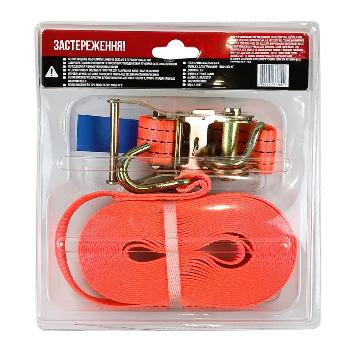 Ремені для кріплення дають можливість максимально швидко зафіксувати вантаж і запобігти мимовільному його зміщенню або падінню. Стяжні ремені вирізняються простотою в експлуатації, легкістю і еластичністю, а також при правильному використанні гарантують товарний вигляд вантажу при перевезеннях. Стяжні ремені являють собою елементи для кріплення, виготовлені з текстильної поліестерової стрічки, що застосовуються для надійної і швидкої фіксації різного роду вантажів при їх транспортуванні. Переваги: Ремені надійні та довговічні Гачки та пряжки характеризуються високою міцністю Зручна ручка натягувача Храповий механізм