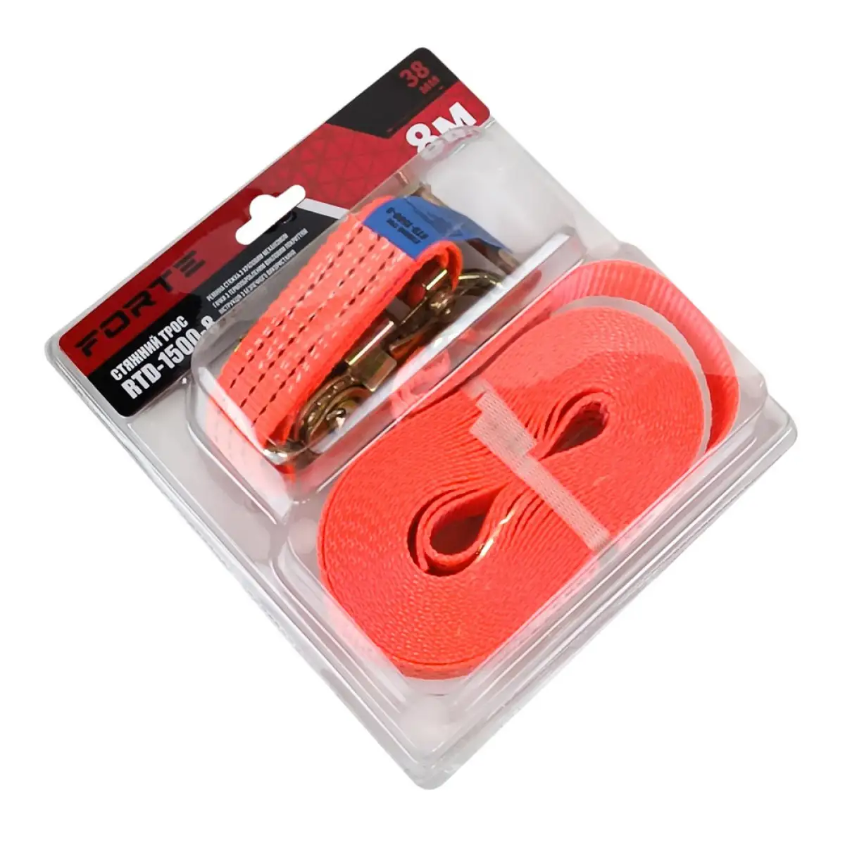 Інформація Стяжний трос Forte RTD-1500-8 38мм*8м, робоча/макс. вага вантажу для утримання 1500/3000кг, вага 1,1