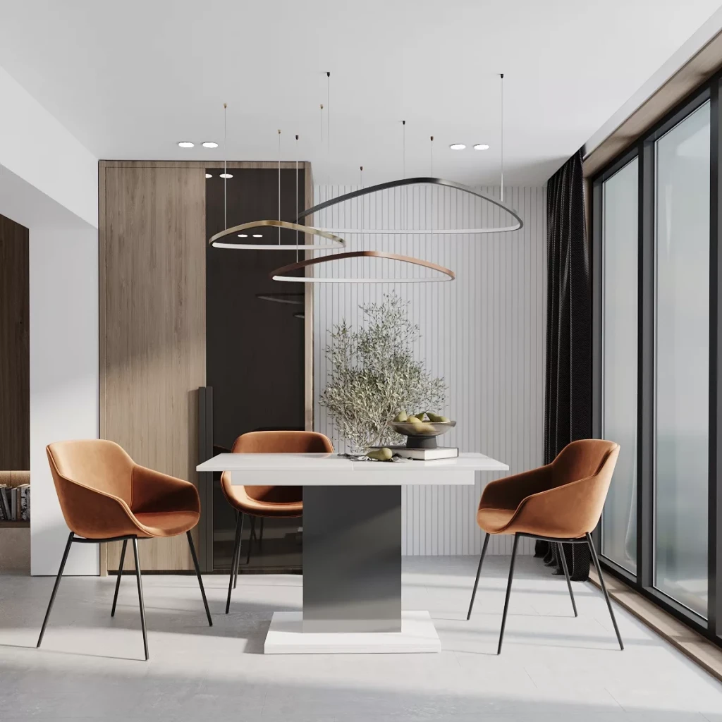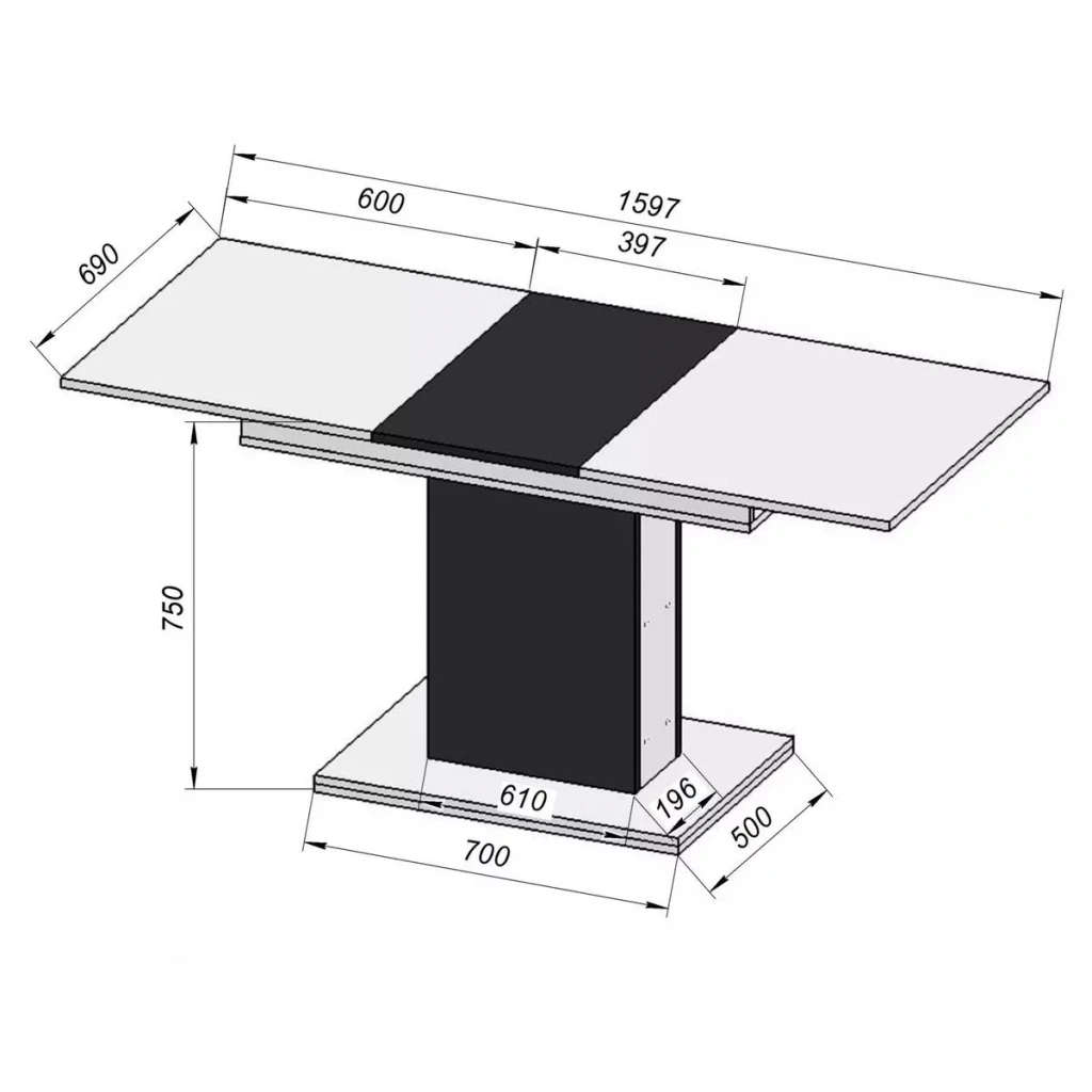 - Сучасний дизайн та конфігурація: стіл має можливість легкої трансформації розмірів завдяки вставці посередині, що дозволяє адаптувати його для різних ситуацій — від щоденних обідів до святкових заходів.