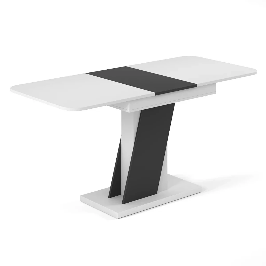 Сучасний стіл-трансформер з елегантним поєднанням білого кольору «Діамант» та графітових сірих елементів. Цей стіл ідеально підходить для стильних та функціональних інтер'єрів. Завдяки механізму трансформації, ви можете збільшити розмір стільниці для комфортного прийому гостей. Легкий у використанні та догляді, він стане не тільки зручним, але й стильним доповненням вашої кухні чи вітальні.