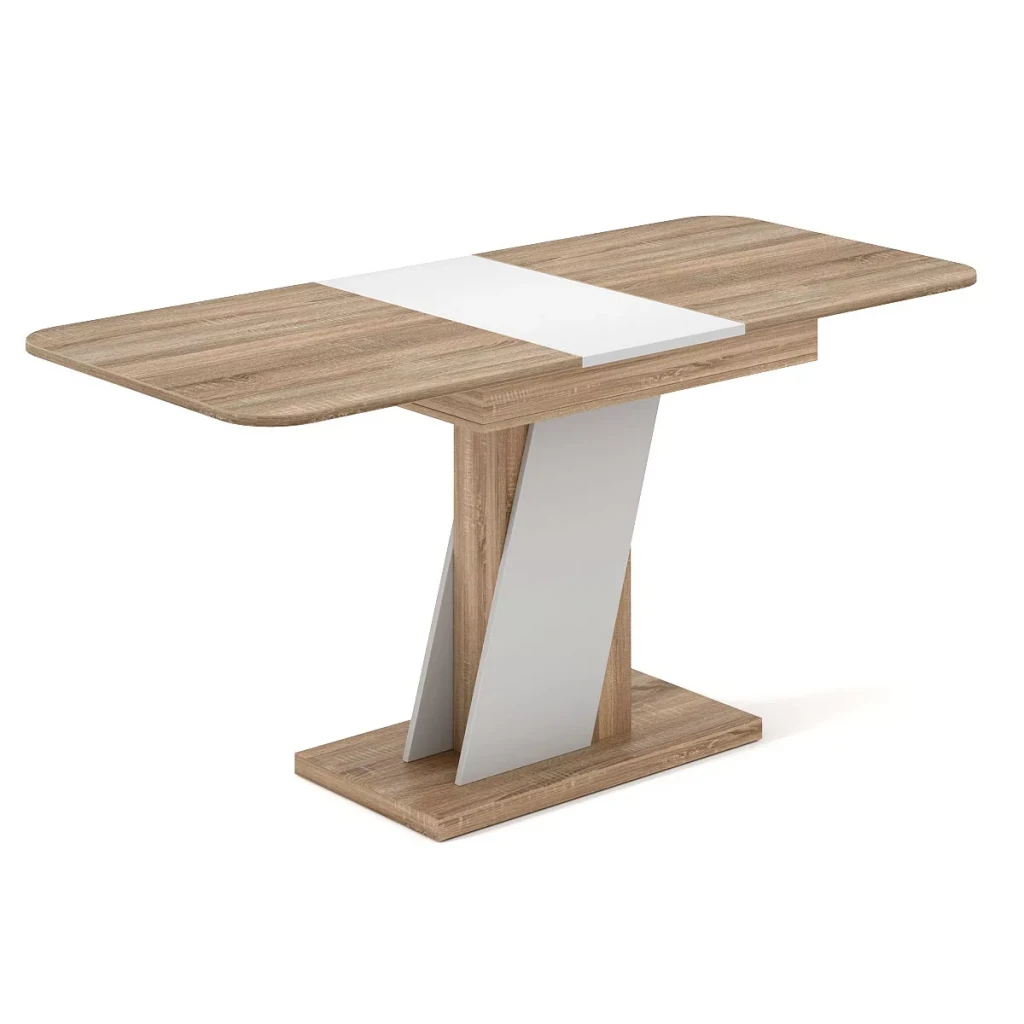 Практичний та стильний стіл-трансформер, який легко адаптується під ваші потреби. Компактний у складеному вигляді, він ідеально підходить для невеликих приміщень, а у розкладеному стані забезпечує достатньо простору для комфортного прийому гостей. Сучасне поєднання кольору дуб сонома з білою вставкою додає свіжості та елегантності інтер’єру. Надійний механізм трансформації та міцні матеріали гарантують довговічність у використанні.