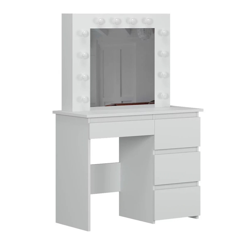 - Досконале освітлення: центральною частиною цього туалетного столика є дзеркало розміром 550×530 мм з 12 LED-лампочками, що забезпечують рівномірне освітлення. Це дозволяє створювати ідеальні умови для нанесення макіяжу чи догляду за обличчям. Лампочки нейтрального кольору, які входять до комплекту, можна легко замінити на теплі чи холодні за вашим бажанням.
