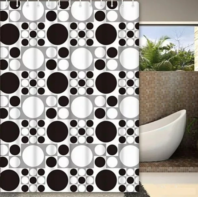 Шторка для ванни Frap F8803 із поліетилену. Просте та бюджетне рішення для ванної кімнати, щоб позбутися бризок і калюж від води. Універсального чорно-білого кольору, підійде до будь-якого інтер'єру. Легка, але є спеціальні невеликі обтяжувачі, щоб тримати її у розправленому стані. Чи не вбирає вологу і швидко сохне.