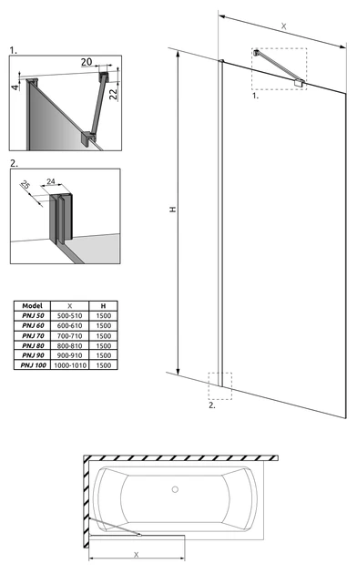 Характеристики Шторка на ванну RADAWAY Idea PNJ 600x1500 хром/прозоре 10001060-01-01
