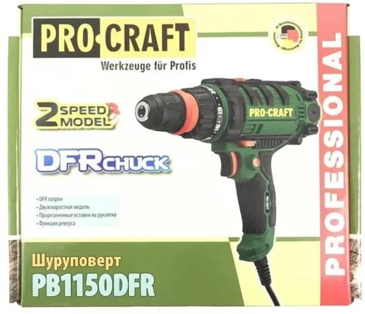 Шуруповерт мережевий Procraft PB1150 DFR - ергономічний інструмент побутового класу, призначений для виконання нескладних ремонтно-монтажних робіт. Шуруповерт мережевий використовується для висвердлювання у дерев'яної та металевої основі заданого діаметру отворів, а також для вгвинчування й вигвинчування кріпильних елементів – болтів, саморізів, шурупів.