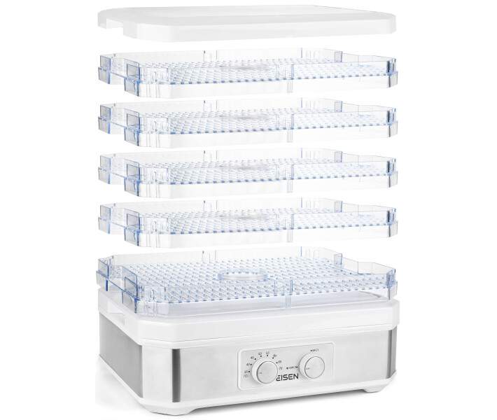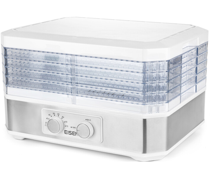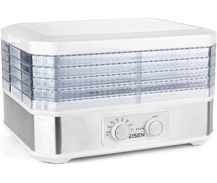 EISEN EFD-055W. Ця сушарка забезпечує швидке і якісне сушіння фруктів, овочів, ягід, м'яса, риби, хліба і багатьох інших продуктів з використанням мінімальних зусиль.
