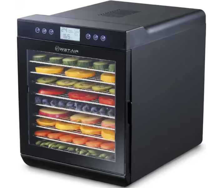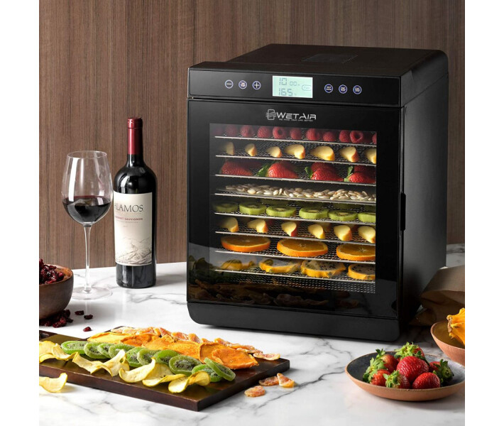 WetAir WFD-K700BSS — універсальна електрична сушарка, за допомогою якої Ви можете створити сприятливі умови для ефективної та зручної дегідратації (підсушування/сушіння/в'ялення) практично будь-яких харчових продуктів. А також, використовувати електросушарку для ферментації, наприклад: приготування квасу, домашнього йогурту та інших кисломолочних продуктів, вистоювання тіста тощо. Ви можете легко збагатити свій раціон (особливо в зимовий період) сушеними продуктами, а саме: різновидами сушеного та в'яленого м'яса, риби, грибів, банановими чипсами, сушеними овочами, фруктами або ягодами, ароматною зеленню, різними травами тощо. За умови, що продукти зазнали м'якого сушіння, вони, зазвичай, зберігають свій первинний аромат, смак і велику частину вітамінів і мікроелементів. Правильно висушені продукти легко відновити за допомогою води/пароварки. Вони практично можуть отримати свій первинний розмір, форму та вигляд.