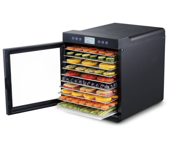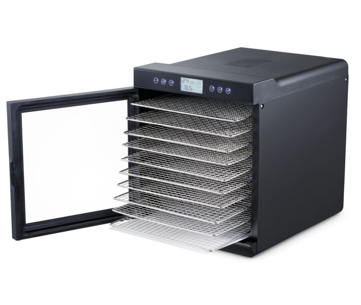 За допомогою сенсорного керування і світлодіодного дисплея дуже просто встановити необхідний час і температуру і, за потреби, коригувати настроювання не зупиняючи процес сушіння продуктів. А цифровий таймер на 24 години (крок 30 хв) з автовимкненням і звуковим сигналом дасть змогу контролювати своєчасне вимкнення сушарки.