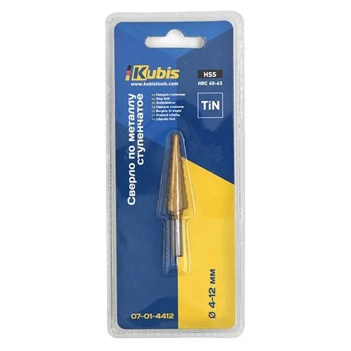 Свердло ступінчасте по металу призначене для центрування, свердління та зняття фаски у високосортній нержавіючій сталі, конструкційній сталі, сталі холодної прокатки, а також у кольорових металах, сталевих листах та пластиці. Свердло виготовлене із швидкорізальної сталі, покритої титаном. Забезпечує тривалий термін служби, швидке, високопродуктивне, якісне свердління.