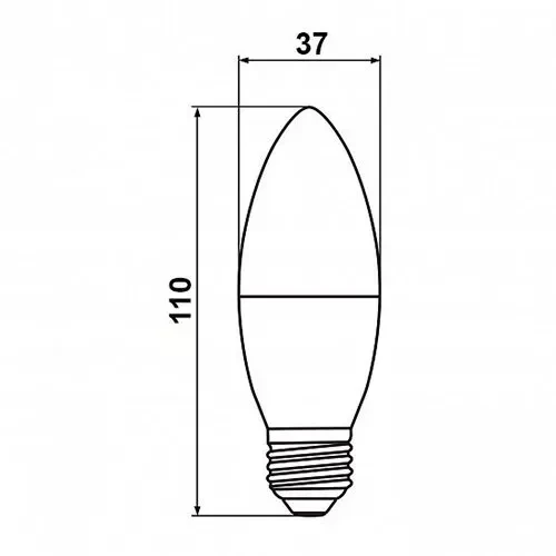 Дана світлодіодна лампа має цоколь типу Е27 і свічкоподібнуформу колби, що відповідає стандарту С37. Потужність цієї моделі становить 7 Вт, а колірна температура її світіння дорівнює 3000 К, тобто, належить до теплої частини спектра. Лампа виготовлена зі спеціального пластика підвищеної міцності, розсіювач виробу – матовий. Модель підійде для установки у більшість стандартних люстр, настільних ламп і настінних світильників. Вона може використовуватися у будь-яких приміщеннях при дотриманні нормального температурного режиму (оптимальні умови – від -10°С до +40°С).