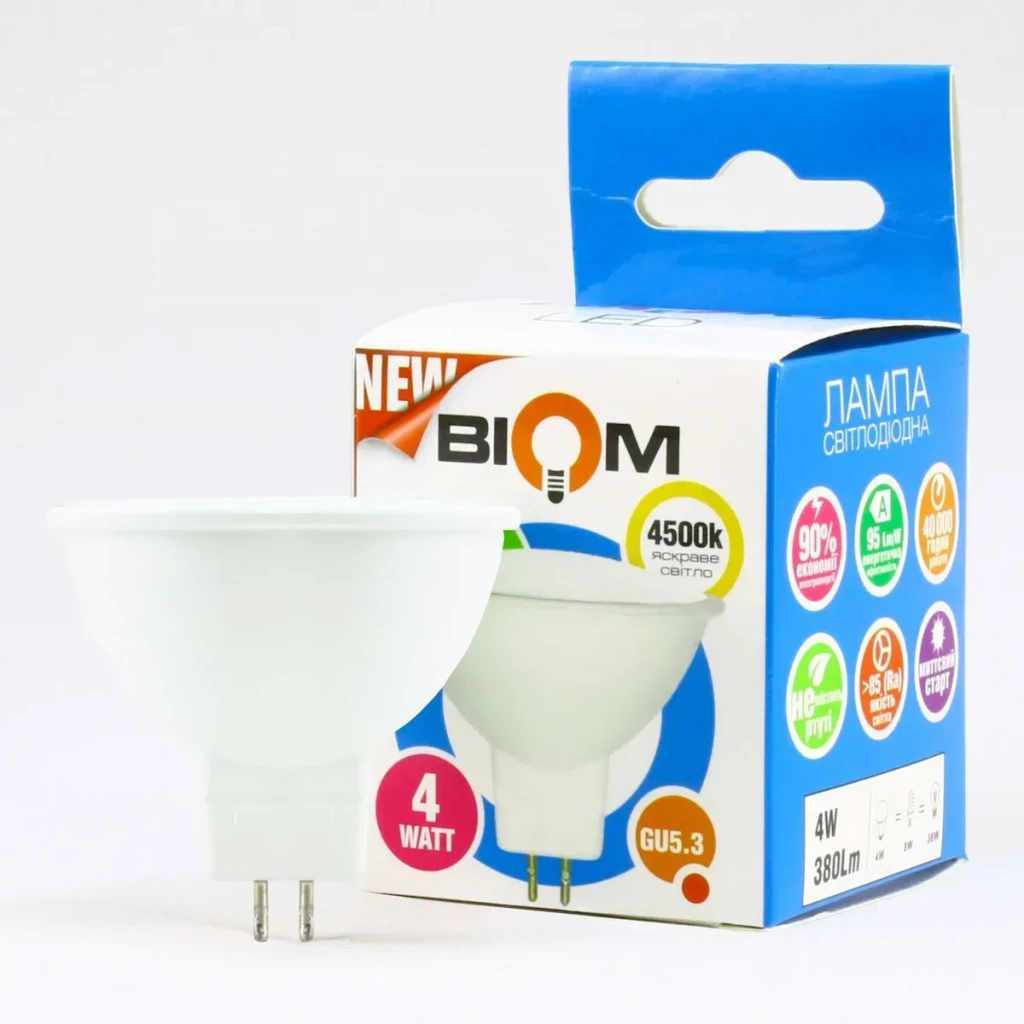 Інформація Світлодіодна лампа Biom MR16 4W 4500K BT-542 220V