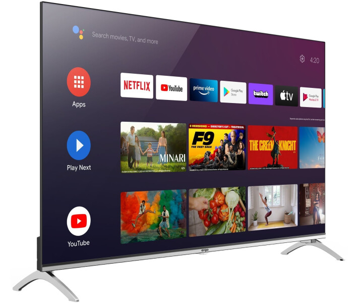 Офіційна та популярна операційна система у світі від Google вже на вашому телевізорі ERGO. Безмежні можливості перегляду світових стрімінгових сервісів, новітні прем'єри, музика, ігри та подорожі в інтернеті на кнопці вашого пульта