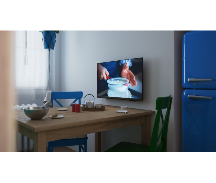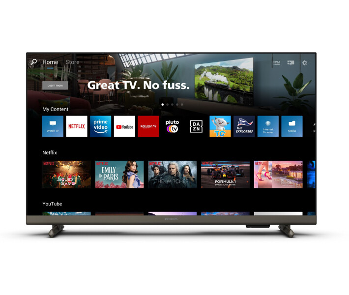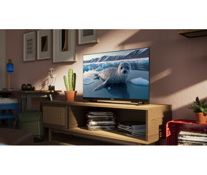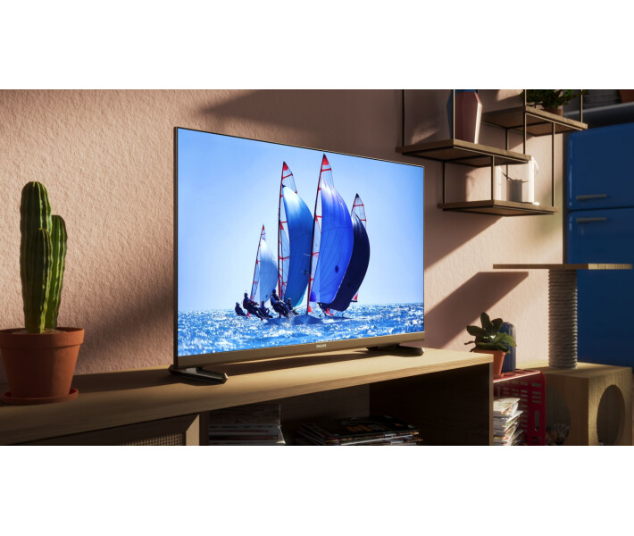 - Ambilight: Технологія Philips, яка створює світлові ефекти навколо телевізора, синхронізовані з вмістом на екрані, для більш захоплюючого перегляду.