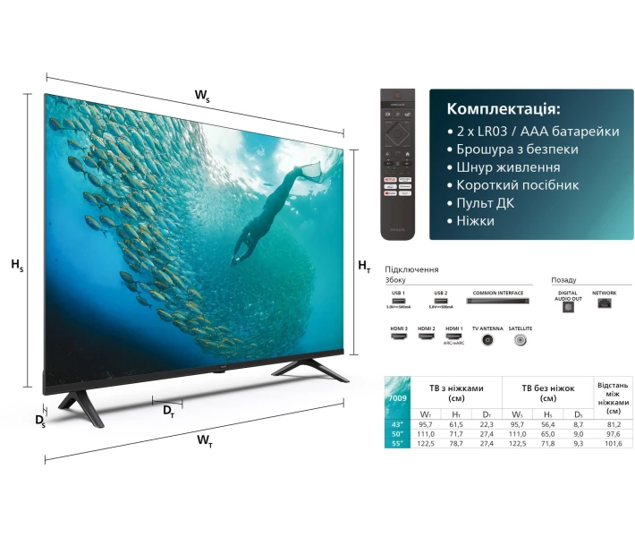 - Пульт дистанційного керування із переробленого пластику. Відповідальна упаковка. - Привабливий дизайн із практично безрамним екраном.