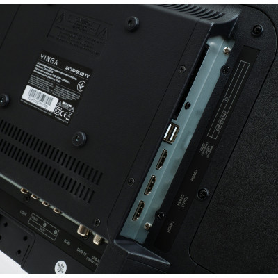 Vinga S24HD25B має глянсовий чорний корпус, що ідеально впишеться у приміщення з будь-яким дизайном. Крім того, вага телевізора без підставки – лише 2,1 кг. Ви без проблем зможете поставити його на тумбу або повісити на стіну, скориставшись кріпленням VESA.