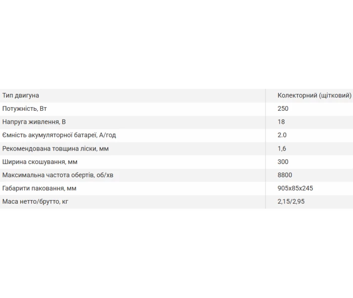 Тример акумуляторний Vitals AZT 1825-1n Kit оснащено сучасним електричним двигуном з мідною обмоткою, напругою живлення 18 В та потужністю 250 Вт, котрий забезпечує високу продуктивність та ефективну роботу пристрою.