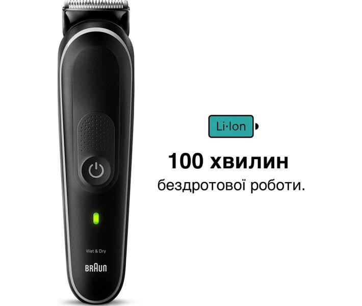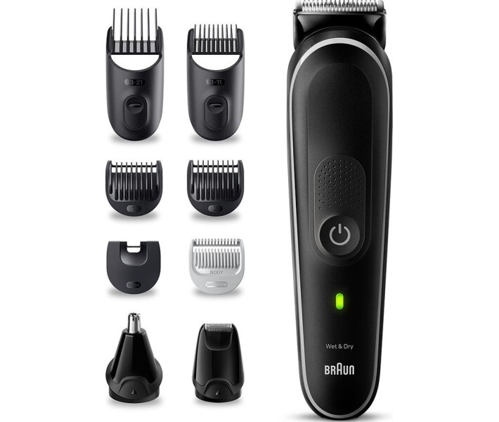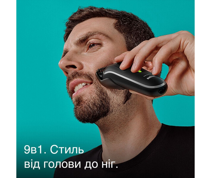 Набір Braun Style Kit 9-в-1 для догляду за волоссям з голови до ніг: спеціально підібрані інструменти для стрижки бороди, вух та носа, а також для стрижки волосся в домашніх умовах - Ваш стиль без зусиль: надгостре лезо ефективно для швидкого догляду за будь-якою поверхнею - Легко укладати волосся будь-якої довжини: відмінні результати на волоссі будь-якої довжини за допомогою гребенів 1 і 2 мм та гребнів для бороди (3–21 мм) - Створений на віки: цей набір для догляду за волоссям для чоловіків оснащений потужним літій-іонним акумулятором зі 100-хвилинним часом автономної роботи, ультрагострими лезами та 100% водонепроникністю - Створений для кожного кроку вашої домашньої рутини: цей набір для догляду за собою для чоловіків включає сумку для зберігання у ванній