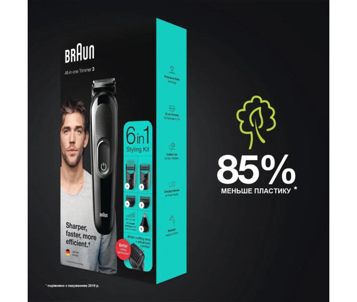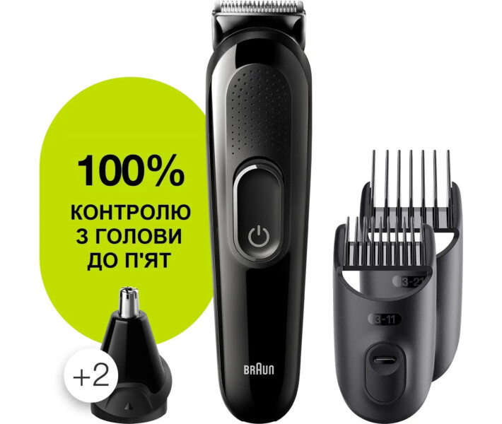 Набір чоловічих тримерів для бороди Braun MGK3 6-в-1 дозволяє підстригати волосся будь-якої довжини: від рослинності на обличчі до видалення волосся в носі та вухах. Довгий гребінь допомагає зберегти довгу щетину (13-21 мм). Короткий гребінець допомагає підтримувати коротку бороду (3-11 мм). Точно підстрижіть волосся до бажаної довжини від 0.5 до 21 мм за допомогою двох регульованих насадок подвійного призначення для чутливих зон. Точно формуйте краї та контури навколо шиї та щік за допомогою основної головки тримера та прецизійної головки. Насадка-триммер для вух та носа дозволяє легко підстригати волосся у вухах та носі. Розроблений у Німеччині триммер MGK3 поєднує в собі позачасовий дизайн та надійну функціональність.