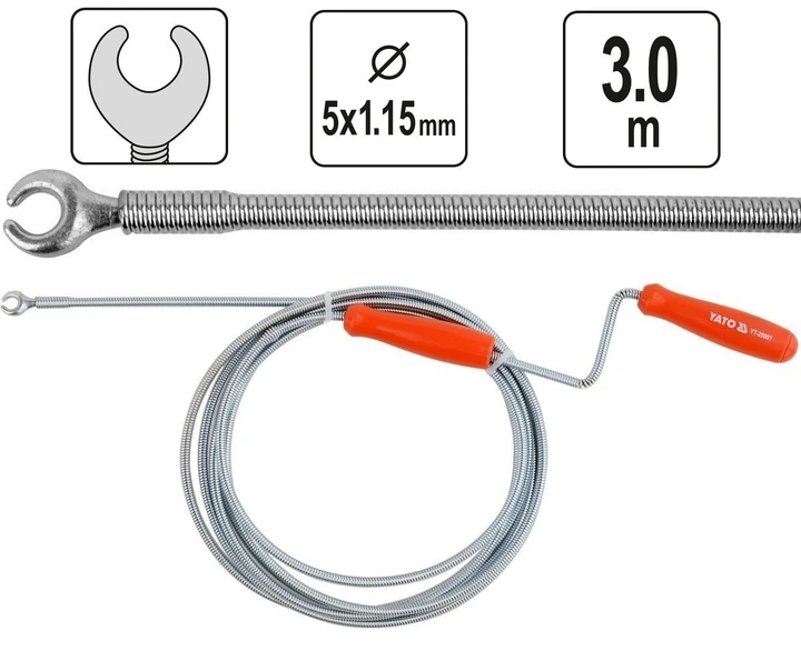 Трос для очищення каналізаційних труб Ø= 5 мм, l= 3 м, YT-25001 YATO