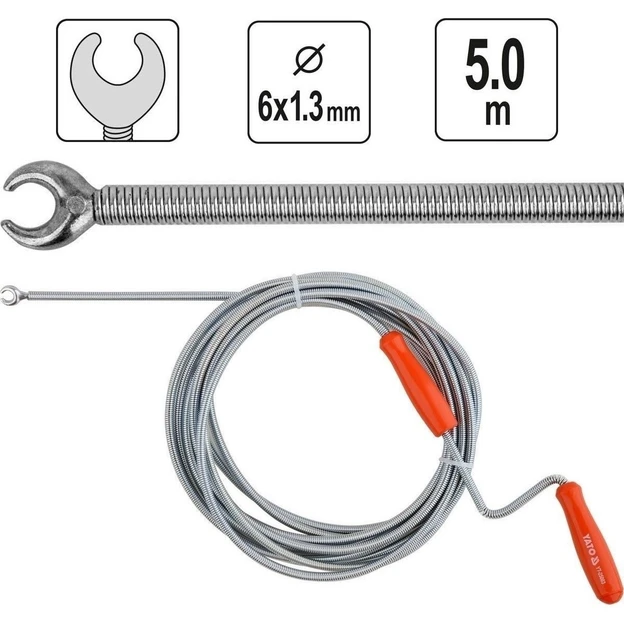Інформація Трос для очищення каналізаційних труб YATO: д.=6мм,L=5м
