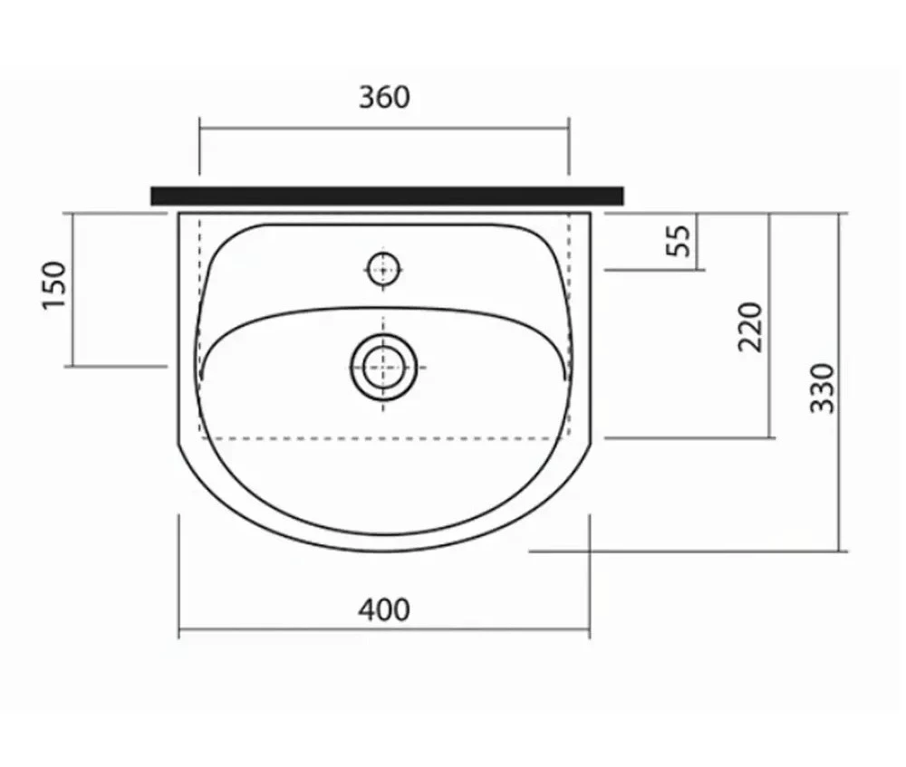 Умивальник меблевий, 400*330 мм, санфаянс, округлої форми, з переливом, 1 отвір, підвісний