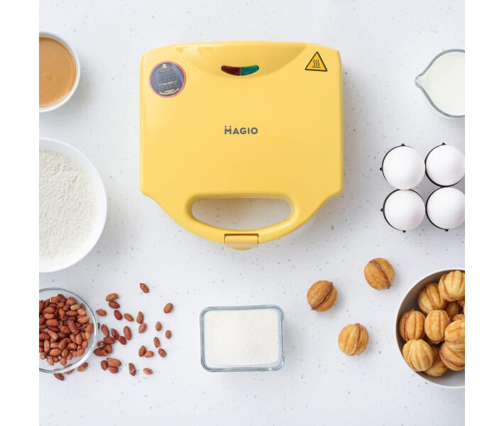 Ліщина для ідеального печива "Горішок" Magio MG-391 770 Вт Горіха MG-391 наповнить будинок теплом та домашнім ароматом. Це те, що потрібно, щоб отримати ідеальне печиво “Горішки”, як у дитинстві. Нагрівальний елемент потужність 770 Вт забезпечить швидке нагрівання двох робочих поверхонь з антипригарним покриттям. Ліщини Magio дуже зручні у користуванні і розраховані на приготування 12 горішків. Завдяки компактним розмірам і фіксатору ліщину зручно зберігати. На кришці є світлові індикатори живлення та готовності до роботи, що полегшує контроль процесу приготування.