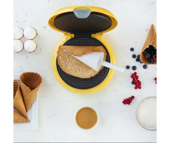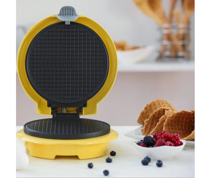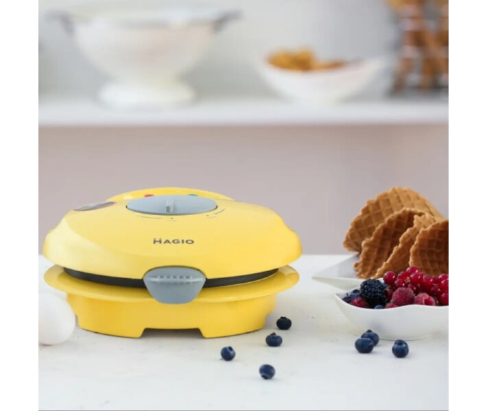 Вафельниця MAGIO MG-397 Вафельниця MAGIO MG-397 – те, що Вам потрібно. Вафельниця MAGIO MG-397 – оновлена версія із ще якісніших матеріалів. Вафельниця MG-390 має всі необхідні функції для того, щоб швидко та без клопоту спекти до сніданку смачні та ароматні вафлі. Нагрівальний елемент потужністю 750 Вт забезпечить швидке та рівномірне нагрівання двох робочих поверхонь з антипригарним покриттям. Вафельниці Magio дуже зручні у використанні, вафлі не пригорають та легко витягуються. Завдяки компактним розмірам та фіксатору вафельницю зручно зберігати. На кришці є світлові індикатори живлення та готовність до роботи, що полегшує контроль процесу приготування. У комплект входить конус для приготування ріжків.