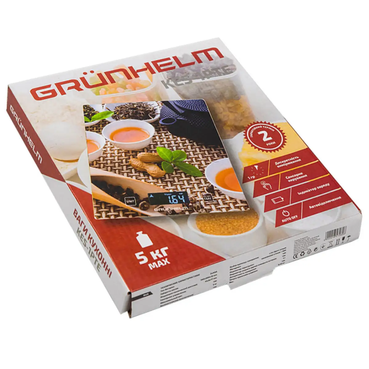 Grunhelm KES-1PTE — кухонні ваги, що поєднують в собі точний механізм і лаконічний дизайн. Вони стануть незамінним помічником у приготуванні улюблених страв, а також прикрасять інтер єр Вашої кухні.