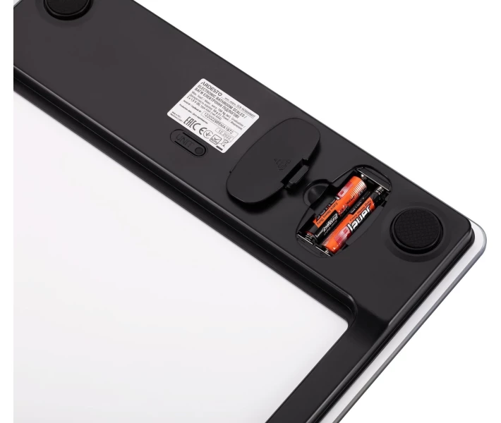 Ваги оснащені високоточним електронним механізмом. Максимальна вага для вимірювання – 150 кг, з дискретністю 50 г. Для відображення результатів є контрастний світлодіодний дисплей, управління – сенсорне, а для живлення використовується два елементи формату AAA.