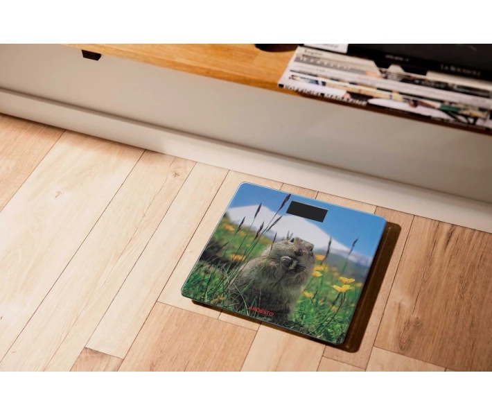 Ваги для підлоги з дизайнерським малюнком. Призначені для вимірювання маси тіла та оснащені вбудованим термометром, а також функцією порівняння попередніх результатів. Модель SCB-965MARMOT виконана в ексклюзивному дизайні.