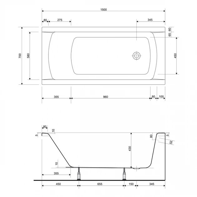 Інформація Ванна акрил CERSANIT Korat 150х70 з ніжками з кріпл