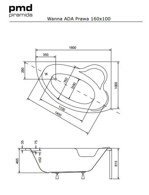 Якість акрилової асиметричної ванни Besco PMD Piramida ADA 160х100 см. правобічній — на висоті! Приголомшливий акрил, власного виробництва, що на ринку сантехнічного обладнання вже велика рідкість. Акрил завтовшки по борту 4-5 мм з потовщенням по дну 6-8 мм, сміливо та впевнено конкурує з такими представниками, як англійська Lusite, або австрійський Senosan, витримує навантаження 300 — 350 кг.