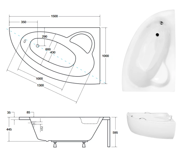 Акрилова ванна Besco Natalia 150x100 R, асиметрична (WAN-150-NP) виготовлена з білосніжно білого суцільнолитого акрилового листа польського виробника ТМ BESCO PMD PIRAMIDA. Ванна Natalia поєднує в собі міцність, якість та надійність. По бортах ванни товщина акрилу складає 4-6 мм, а в основі дна до 8 мм. Дно ванни підсилене ДСП плитою, товщина якої 18 мм. Вся ванна ззовні посилена армуванням із стіклопластикового волокна та шару коремата, компонент який збільшує міцність та надійність виробу. Чому саме ванна фімри BESCO? 1) Власне виробництво акрилу який є прямим конкурентом англійському Lusite та австрійському Senosan. 2) Відмінний контроль якості, який Беско забезпечує вже більше як 25 років. 3) Щорічно затверджена міжнародна сертифікація якості виробів ISO 9001 4) Відмінний дизайн 5) Доступна ціна. Всі ці переваги роблять Besco беззаперечним лідером на ринку. Ванна Natalia при обємі води в 155 літрів та навантаженню 350 кілограм на критичну точку підтверджує свою якість та надійність. За додаткову плату ванну можна покрити антиковзаючим покриттям BESCO BeSafe, яке забезпечить вам спокій купання та безпеку в мильній воді.