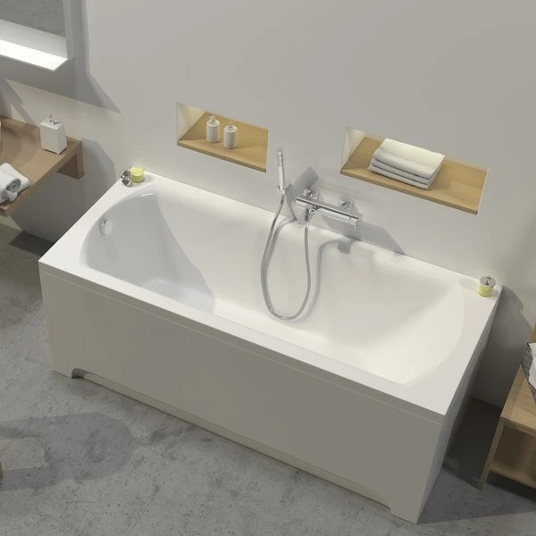 Акрилова прямокутна ванна Domino II з ергономічним нахилом спинки. Підходить для облаштування суміщеного душового куточка. Лаконічна модель, що встановлюється біля стіни, вписується в десятки напрямків сучасного дизайну інтер'єру.