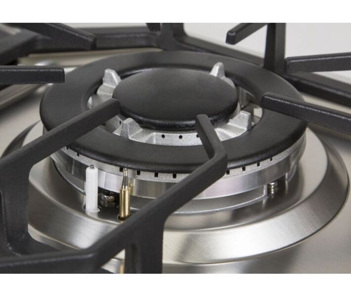 Наявність турбо-конфорки з трьома рядами полум'я дозволяє готувати страви в великому посуді і значно скоротити час нагрівання в порівнянні зі звичайними конфорками.