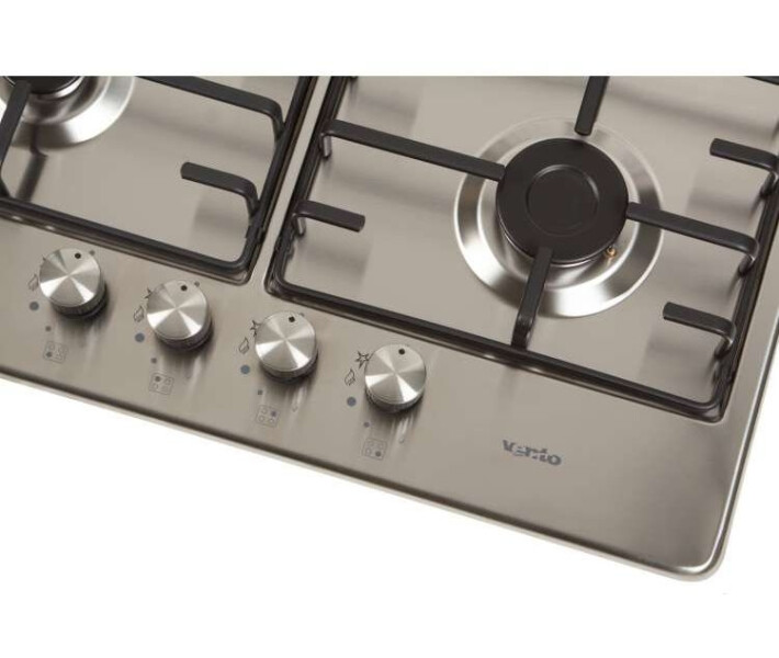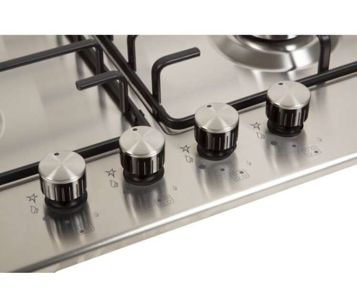 Робочий стіл з нержавіючої сталі розміщує на собі 4 конфорки різної потужності та розмірів. Над ними надійні грати з емальованої сталі, які витримують навіть самий об'ємний посуд і легко піддаються догляду. Ручки управління виконані з жаростійкого пластику, що не дає їм перегріватися та виділяти неприємні токсичні запахи. Вони розташовані спереду посередині, щоб доступ до них був однаково комфортним і для шульги, і для правші.