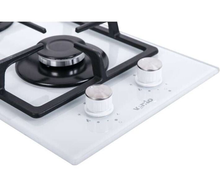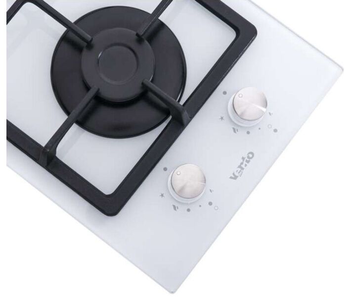 Варильна поверхня Ventolux HSF320G CS (WH) 3 відповідає високим стандартам якості використовуваних матеріалів. Панель виготовлена з ударостійкого термостійкого скла. Такий матеріал має привабливий зовнішній вигляд і легко піддається очищенню. Два пальники мають різну потужність і діаметр. Зверху розташована велика потрійна конфорка, а знизу маленька. Поверх пальників розташована міцна чавунна решітка. Така опора особливо зручна для розміщення посуду.