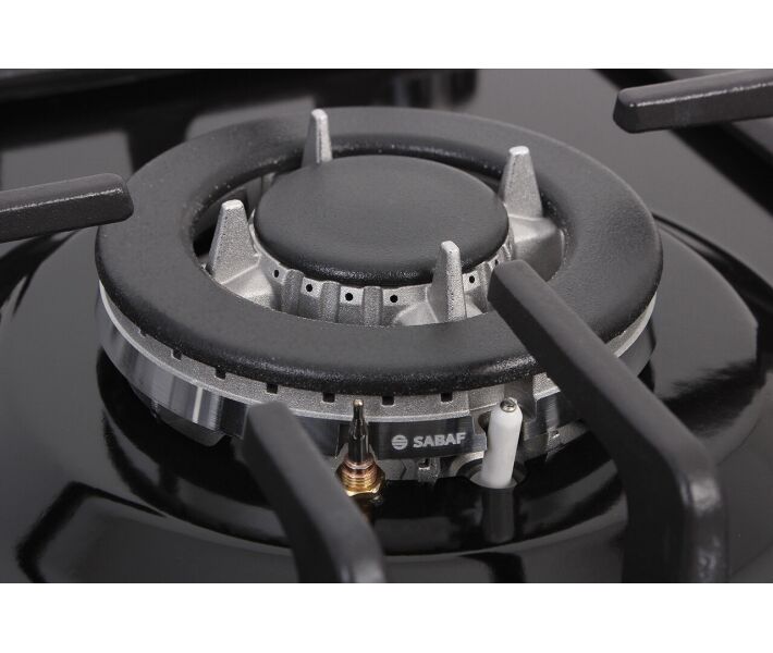Представлений прилад обладнаний чотирма конфорками: великою потрійною (3,0 кВт), двома середніми (1,7 кВт) і однією маленькою (1 кВт). Варильна поверхня має чавунні тримачі та функцію газ-контроль, яка робить використання приладу безпечнішим. Така функція відповідає за припинення подачі газу, у випадках, коли гасне полум'я.