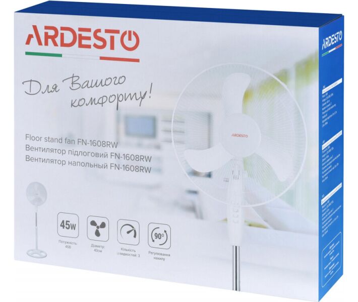 Витіювата зовнішність підлогового вентилятора Ardesto FN-1608RW привертає до себе увагу з першого погляду. За красою ховається продуктивність, за доступною ціновою категорією – успішний маркетинговий хід.