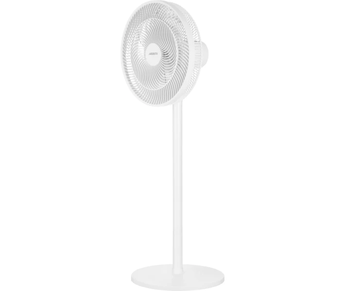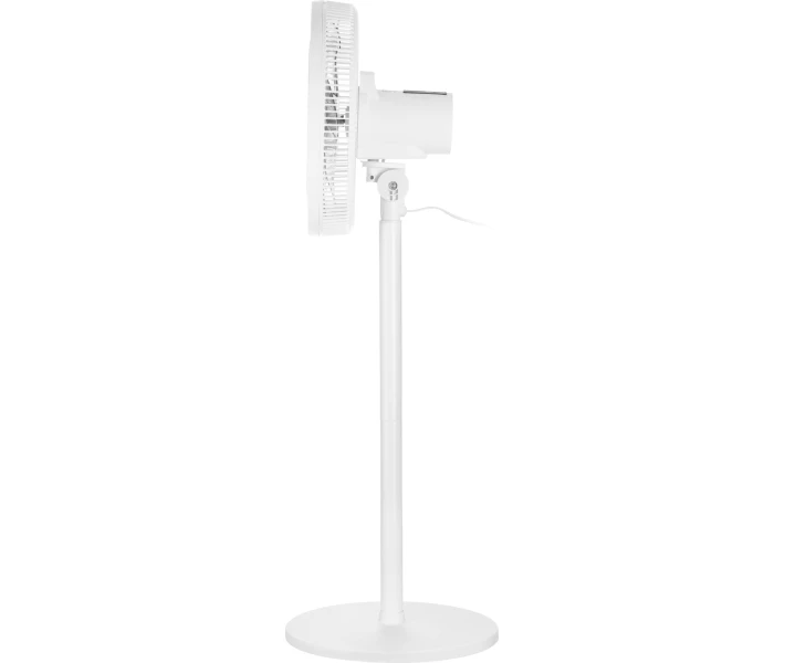 Витонченість білого корпусу, прозорі лопаті та кругла опора зумовлюють елегантний вигляд, що гармонійно доповнює будь-яке приміщення. Вентилятор має діаметр 40 см, поєднуючи компактність із продуктивністю. Конструкцією передбачена можливість регулювання висоти (два рівні) – 112 см або 75 см, що дозволяє настроїти пристрій відповідно до потреб.