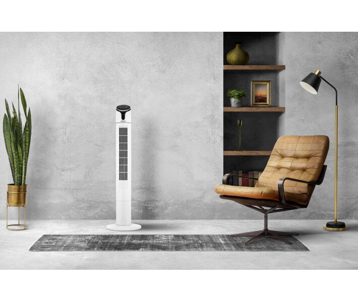 Підлоговий вентилятор колонного типу з потужністю 50 Вт, пультом дистанційного управління, таймером, датчиком температури та LED-дисплеєм. Вентилятор підтримує налаштування швидкості та обертання, а також режим морського бризу. Купити Ardesto FNT-R44X1WY22 Ви можете оформивши замовлення у нас на сайті, а також за телефоном гарячої лінії.