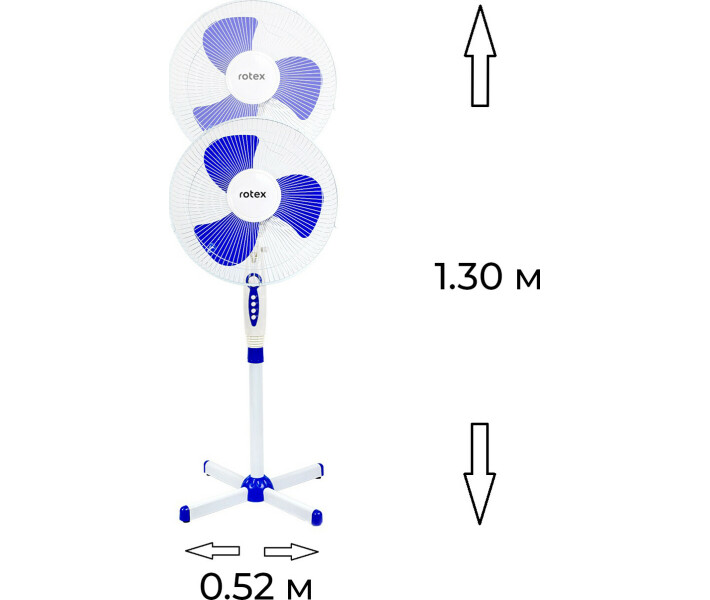 Підлоговий вентилятор Rotex RAF49-E працює в трьох швидкісних режимах, використовуючи три 40-сантиметрові лопаті. Модель працює під кнопковим керуванням, оснащена 60-хвилинною таймером. Захисна решітка перешкоджає можливим колапсів. Модель обладнана функцією автоповороту, яка освіжить кожен куточок вашої кімнати. Є можливість регулювання по висоті, а також можливість змінювати кут нахилу. Максимальна потужність даної моделі дорівнює 40 Вт. Працюйте зі свіжістю разом з Rotex RAF49-E!