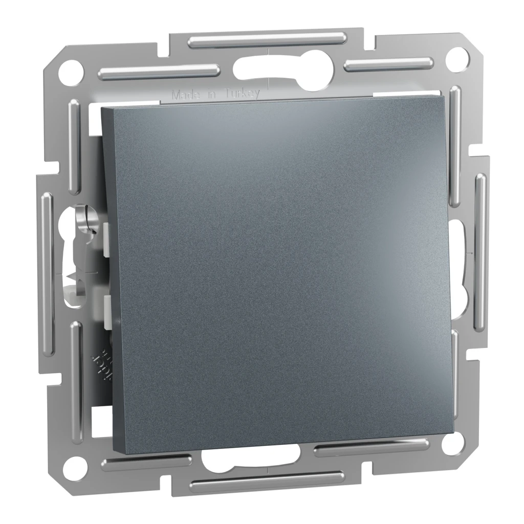 Вимикач одноклавішний (сх.1) Asfora, сталь — класичний одноклавішний вимикач для керування освітленням. Виконаний у сталевому кольорі, що надає сучасного і строгого вигляду інтер’єру. Надійна конструкція гарантує тривалий термін служби та безпечне керування світлом у будь-якому приміщенні.