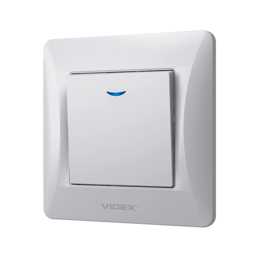 breadcrumb iconВимикач VIDEX BINERA 1кл. з підсвітк. срібний шовк