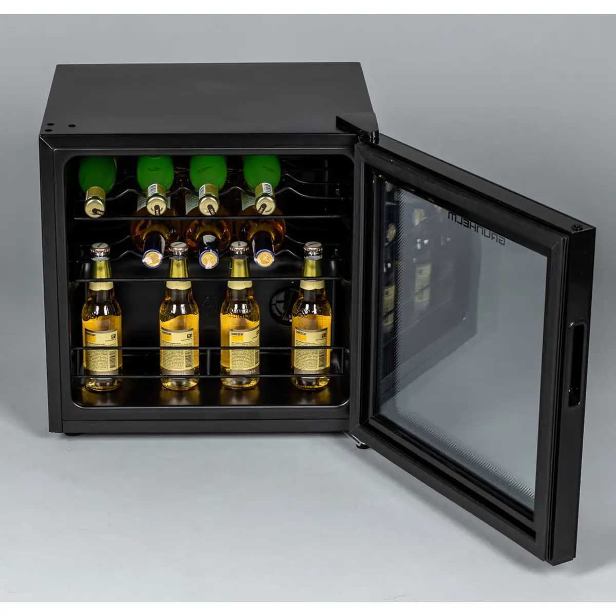 Винна шафа GWC-14 - це холодильна установка, яка створює оптимальне для напоїв середовище, близьке до сховищ на виноробнях. Виконана у чорному кольорі розрахована на зберігання 14 пляшок. Висота 500 мм